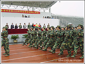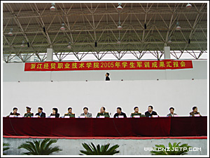 10月28日下午,学院2005年学生军训汇报大会在田径场隆重召开。学院党委书记童学敏、院长李曙明、党委副书记潘素芳、副院长周文根、副院长卢显林、纪委书记潘新华、副院长王建华,武警杭州指挥学校副政委熊品万、教保科科长陶永枫、财务科科长王志成、军训团团长周军出席了汇报大会,大会由学生处处长许兴苗主持。