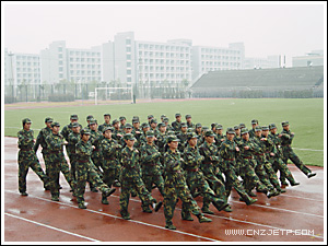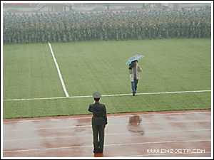 虽然天下着雨,但学院2004级、2005级全体学生依然冒雨在田径场整齐列队。3点30分,伴随着高亢的国歌声,汇报大会正式开始。学院党委书记童学敏在军训团周军团长的陪同下检阅了全体受训学员。接着,阅兵总指挥宣布分列式开始。两个年级88个方阵依次通过主席台。同学们高昂的精神面貌,整齐而矫健的步伐,嘹亮的口号,获得了学院和武警指挥学校领导以及在场老师们的阵阵掌声。